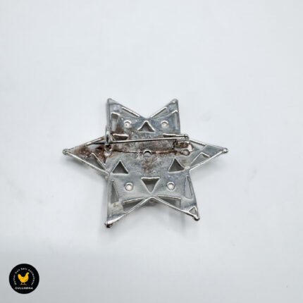 Brosje i sølv med gul og hvit emalje