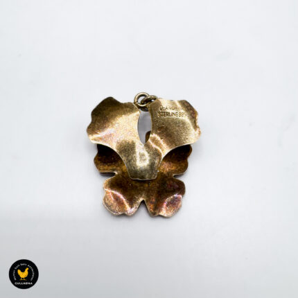 Brosje i forgylt sølv med flerfarget emalje – Stemorsblomst – David-Andersen