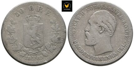 1885 Norge 50 Øre, 1-, Kant Hakk