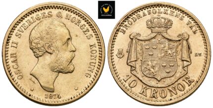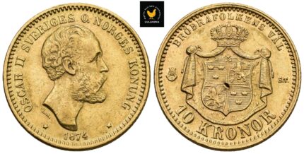 1874 Sverige 10 Kroner, 1+/01, Renset