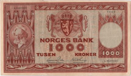1949 Norge 1000 Kroner A.0597297, 1, Brette rift