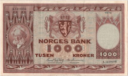 1974 Norge 1000 Kroner A.5239386, 1, Små rifter nedre kant