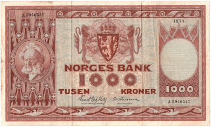 1971 Norge 1000 Kroner A.3946547, 1-, Ingen rifter