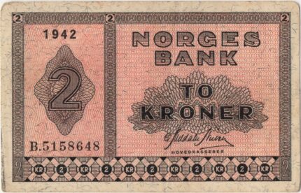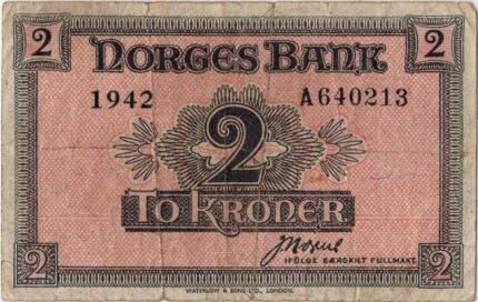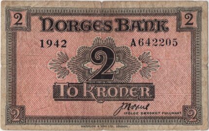 1942 Norge 2 Kroner “London Seddel” A.341139, 1-