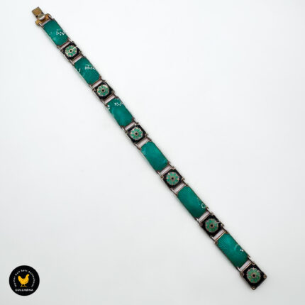 Armbånd i forgylt sølv med grønn og svart emalje – D-A