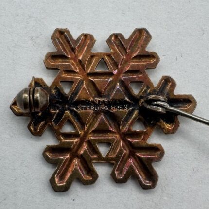 Brosje i forgylt sølv med hvit emalje – Snøkrystall – David Andersen
