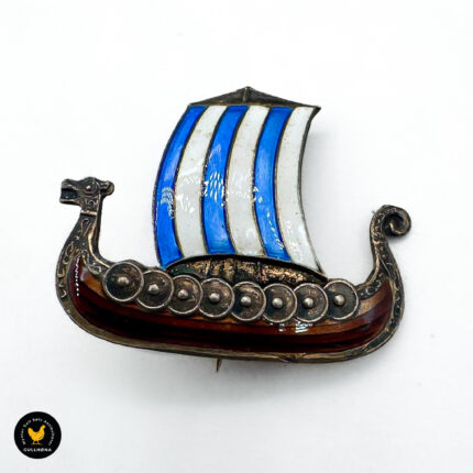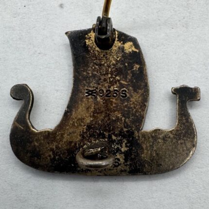 Brosje i forgylt sølv med flerfarget emalje – Aksel Holmsen – Vikingskip