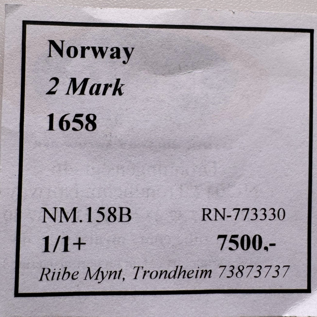 1658 Norge 2 Mark, 1/1+