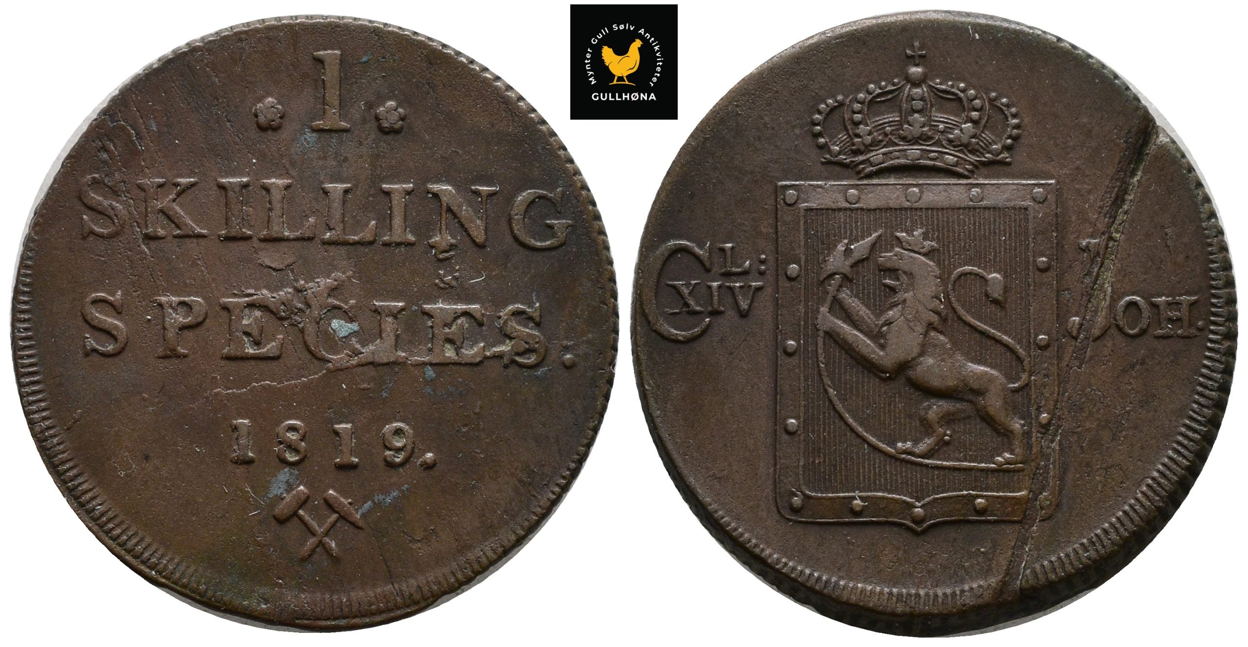 1819 Norge 1 Skilling, 1+/01, Blankett feil