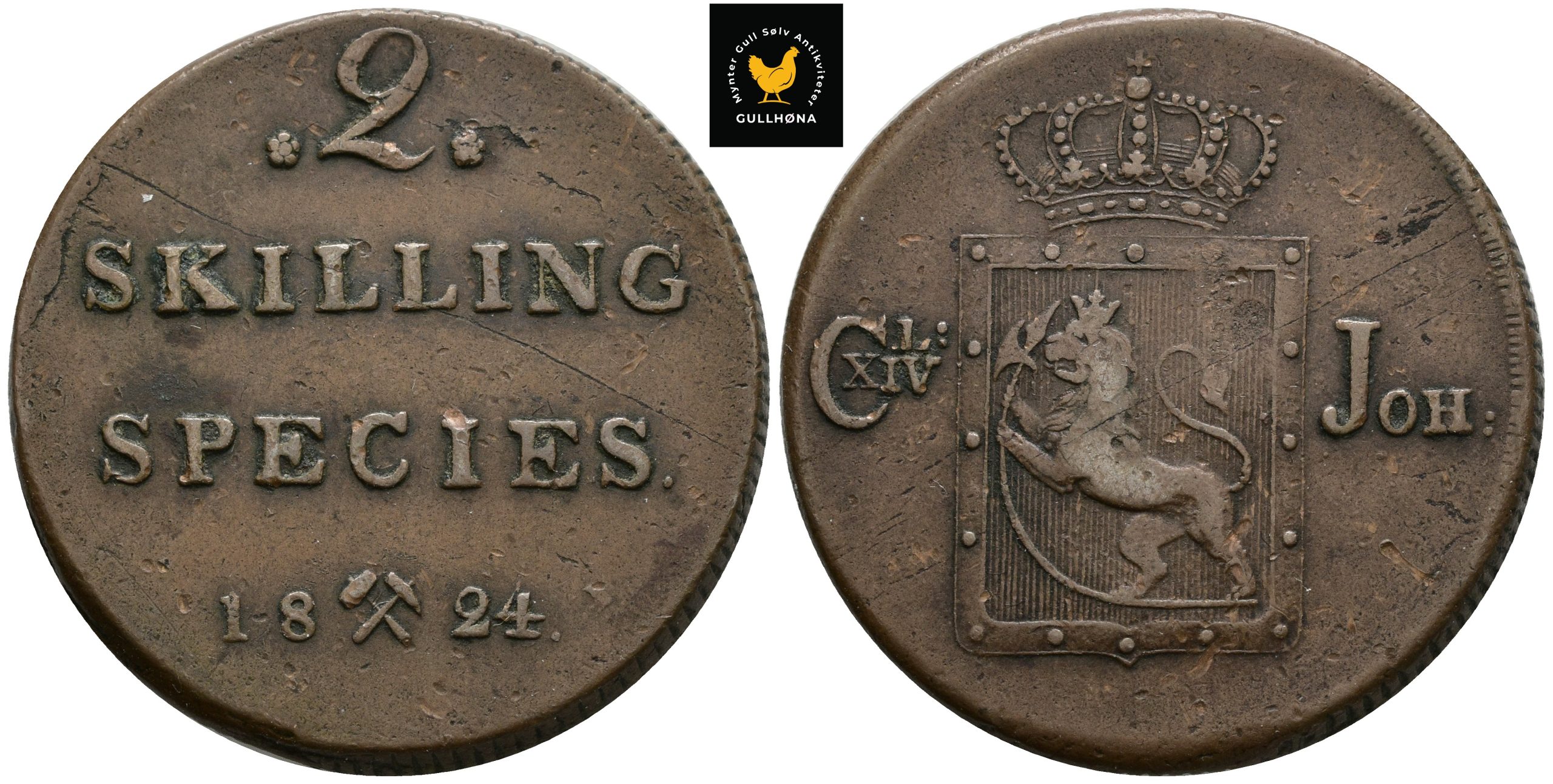1824 Norge 2 Skilling, 1+