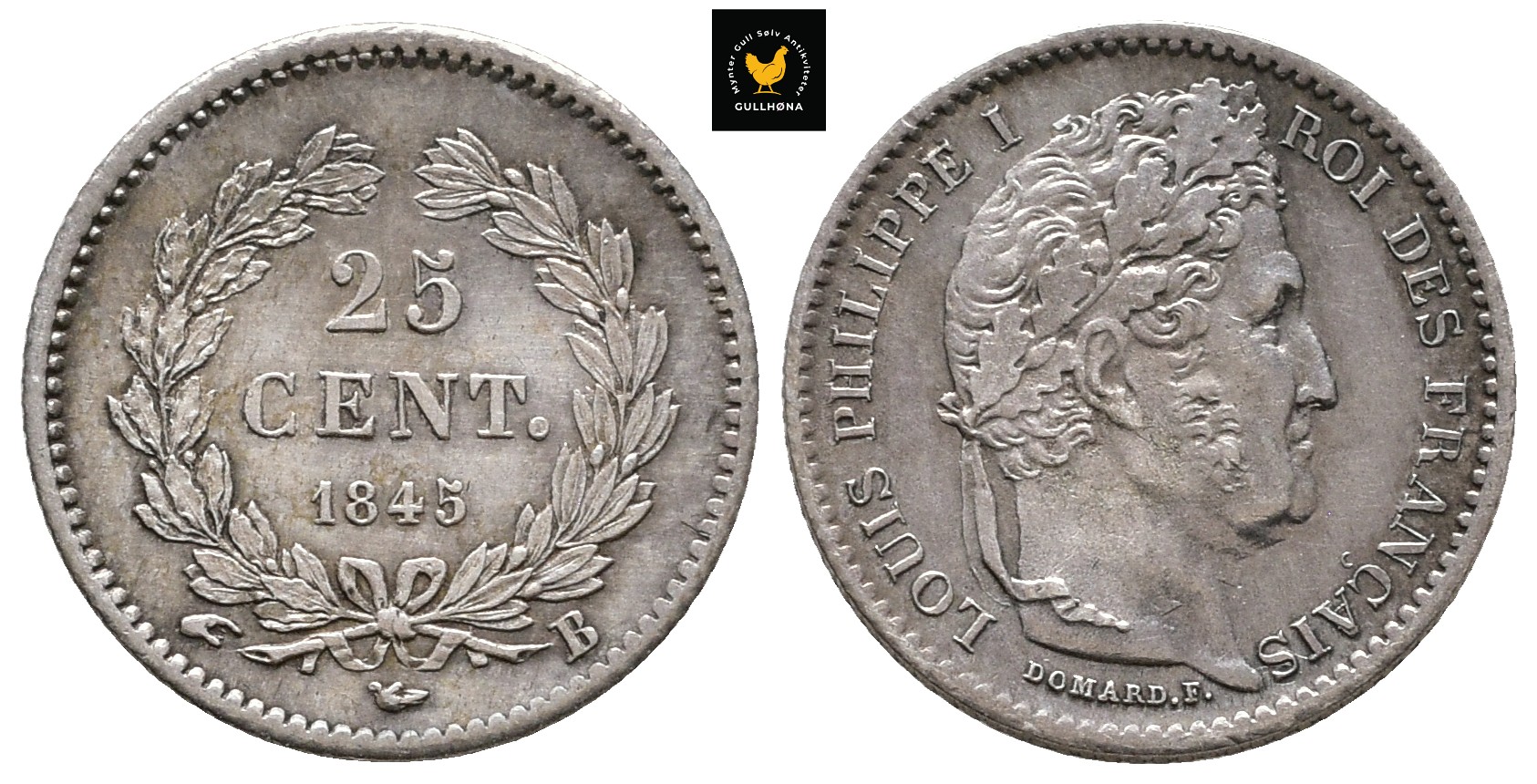 1845 B Frankrike 25 Cent, (Rouen), 1+/01