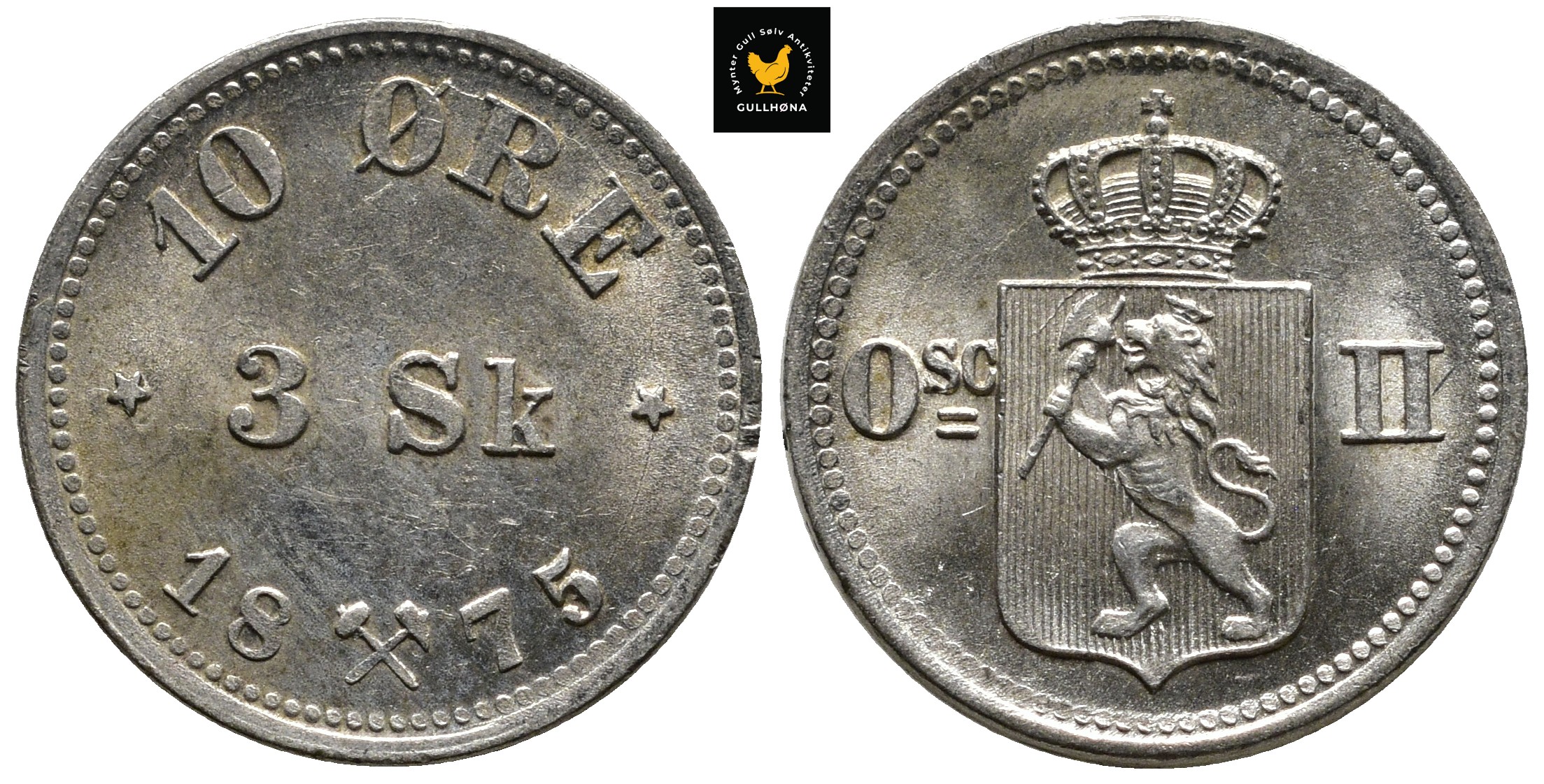 1875 Norge 10 Øre, 0/01, Kant Hakk