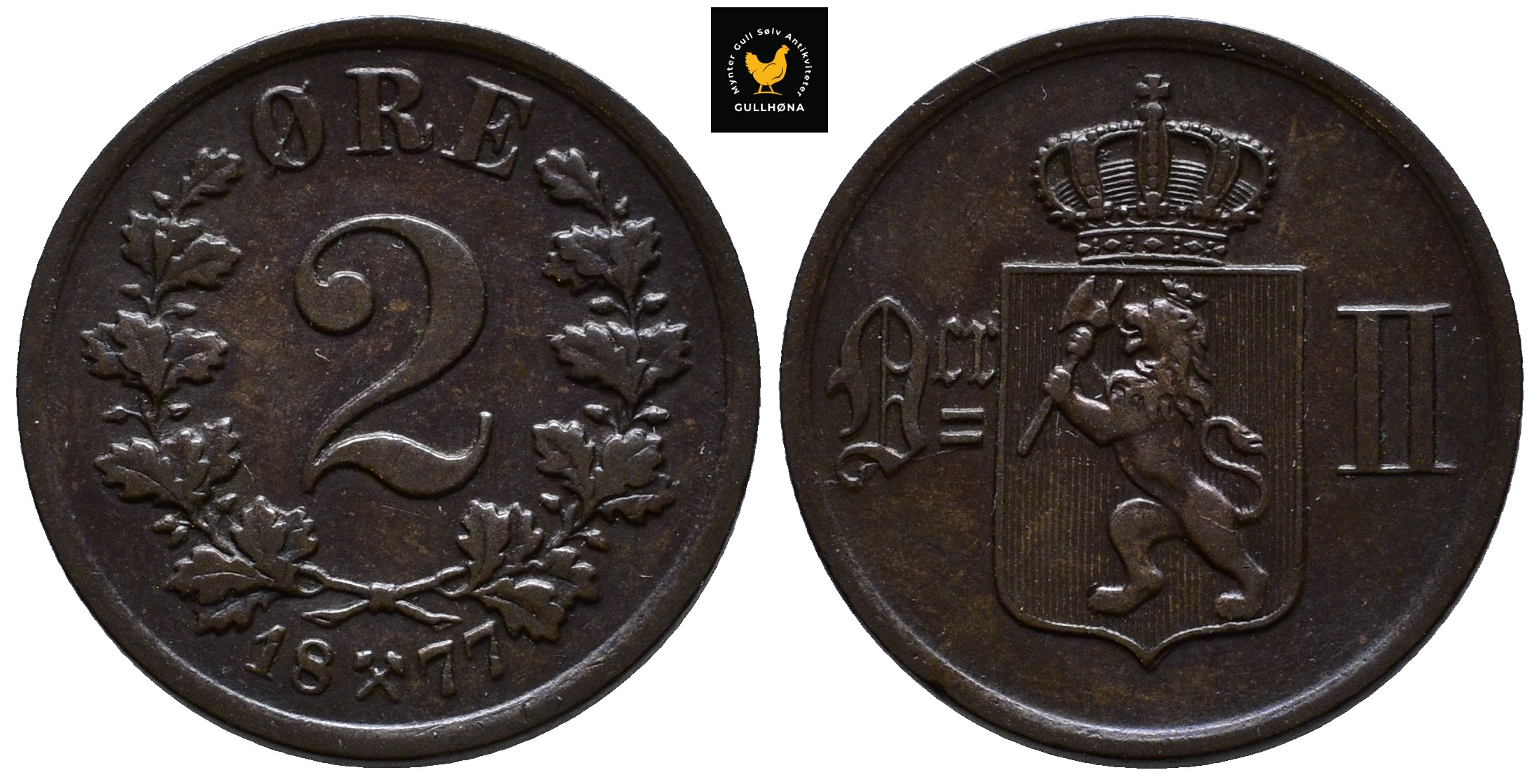 Hjem Mynter Mynter Norge Etter 1874 2 øre 1877 Norge 2 Øre