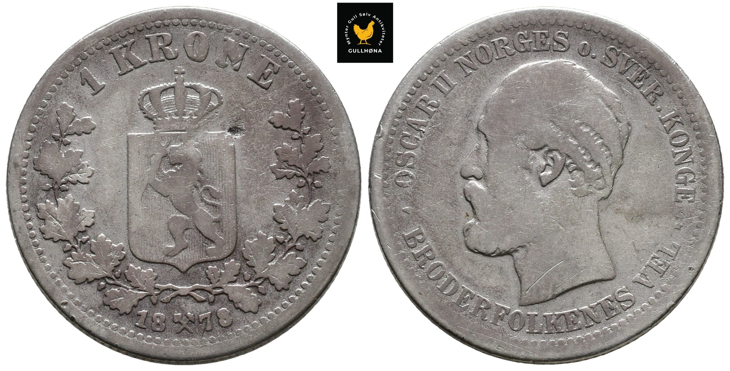 Hjem Auksjon Mynter 1878 Norge 1 Krone. 1-/2