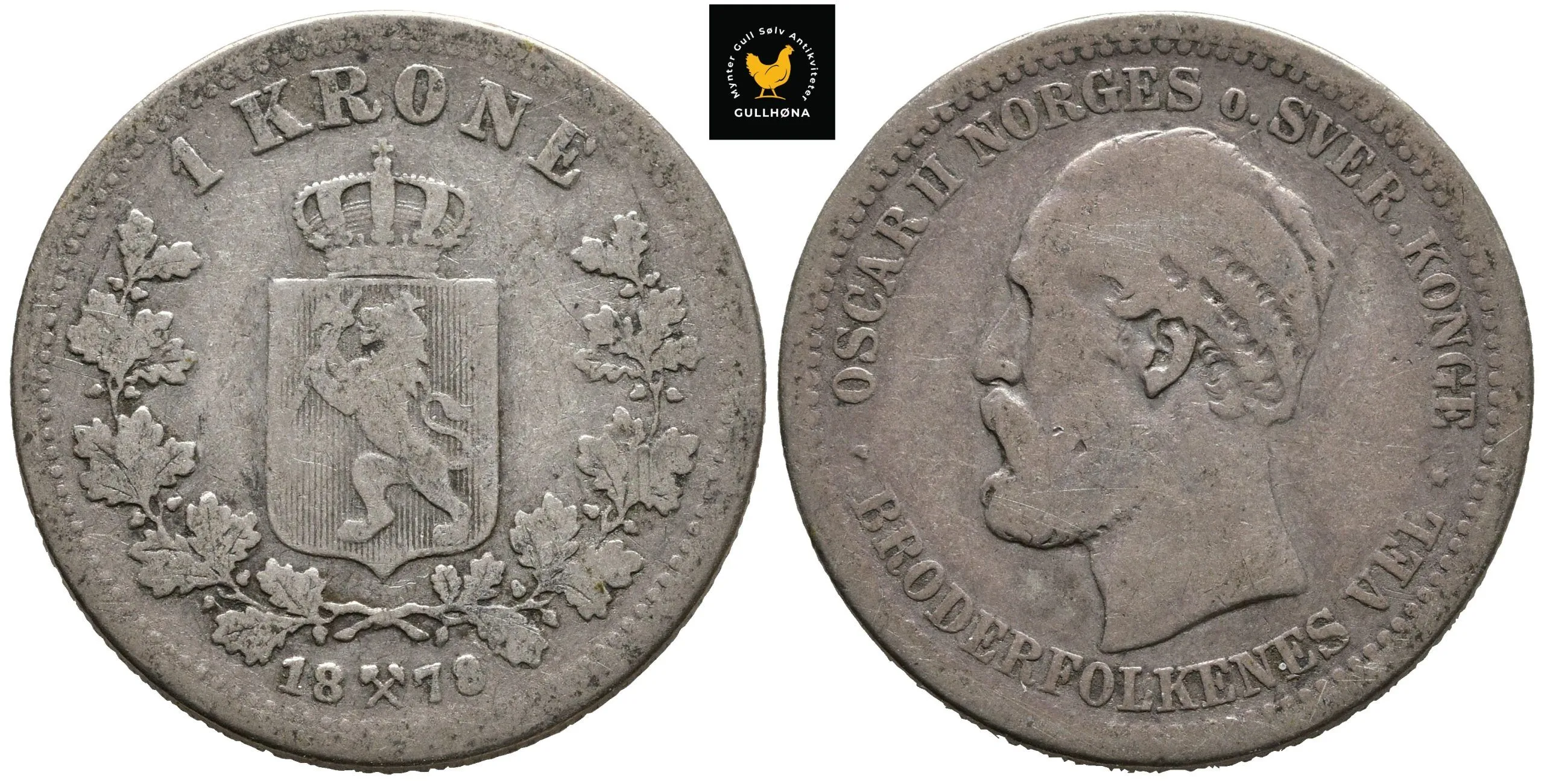 Hjem Mynter Mynter Norge Etter 1874 1 kroner 1878 Norge 1 Krone, 1-