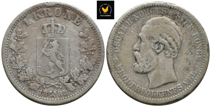 1882 Norge 1 Krone, 1-, Ks, Riper