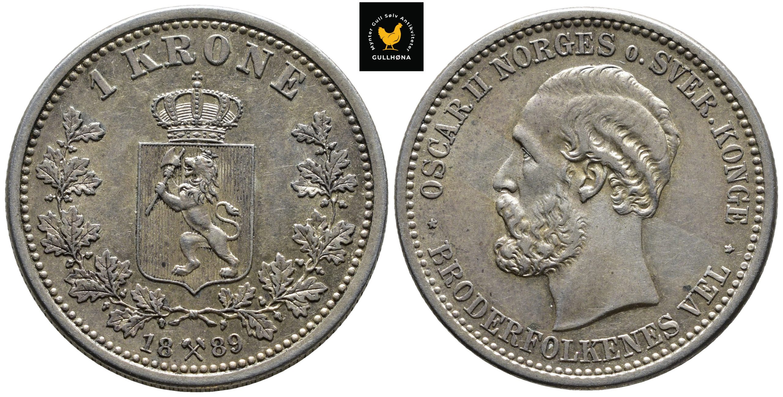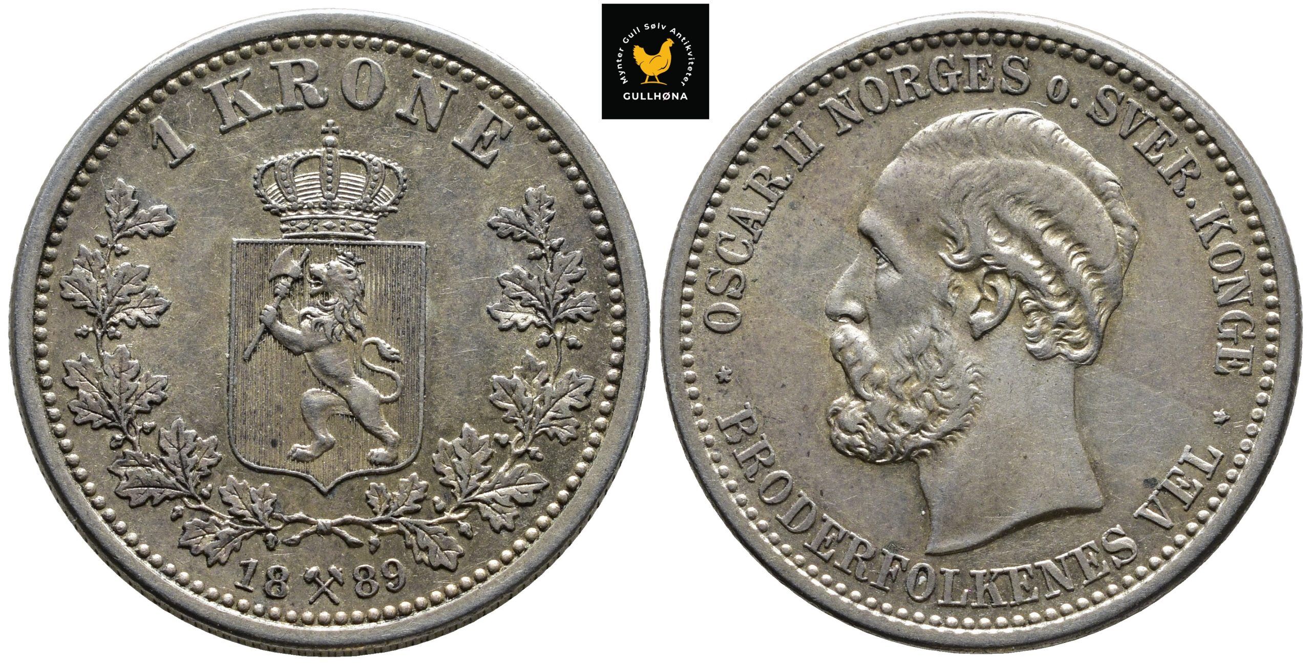 Hjem Mynter Mynter Norge Etter 1874 minnemynter Sølv 1889 Norge 1 Krone. 01