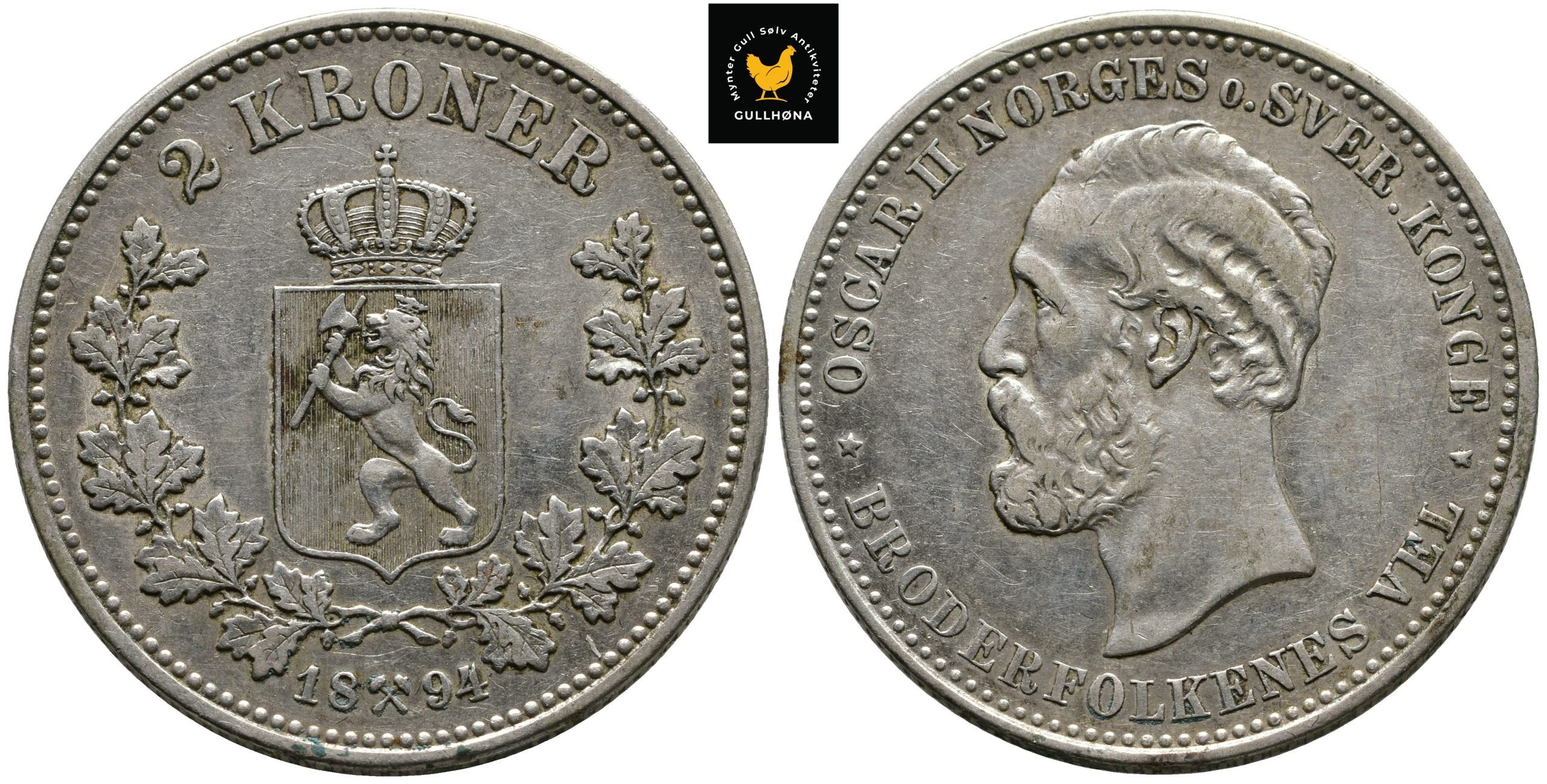 1894 Norge 2 Kroner, 1/1+