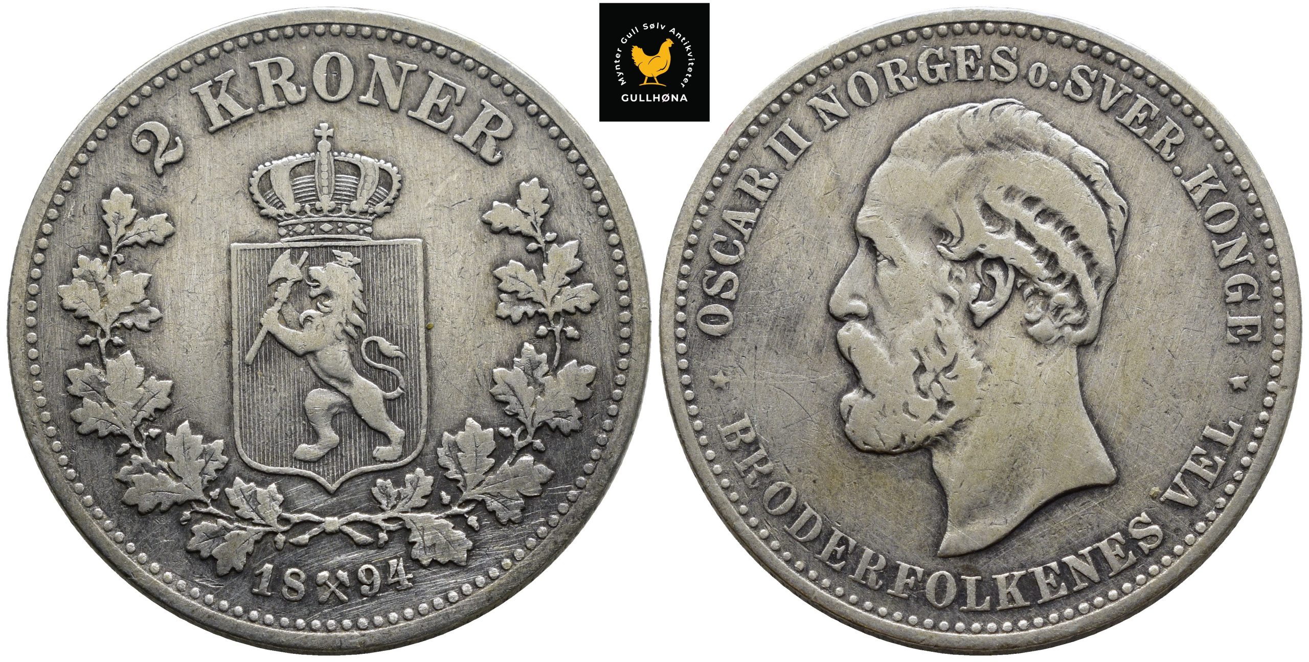 1894 Norge 2 Kroner, 1, Pusset