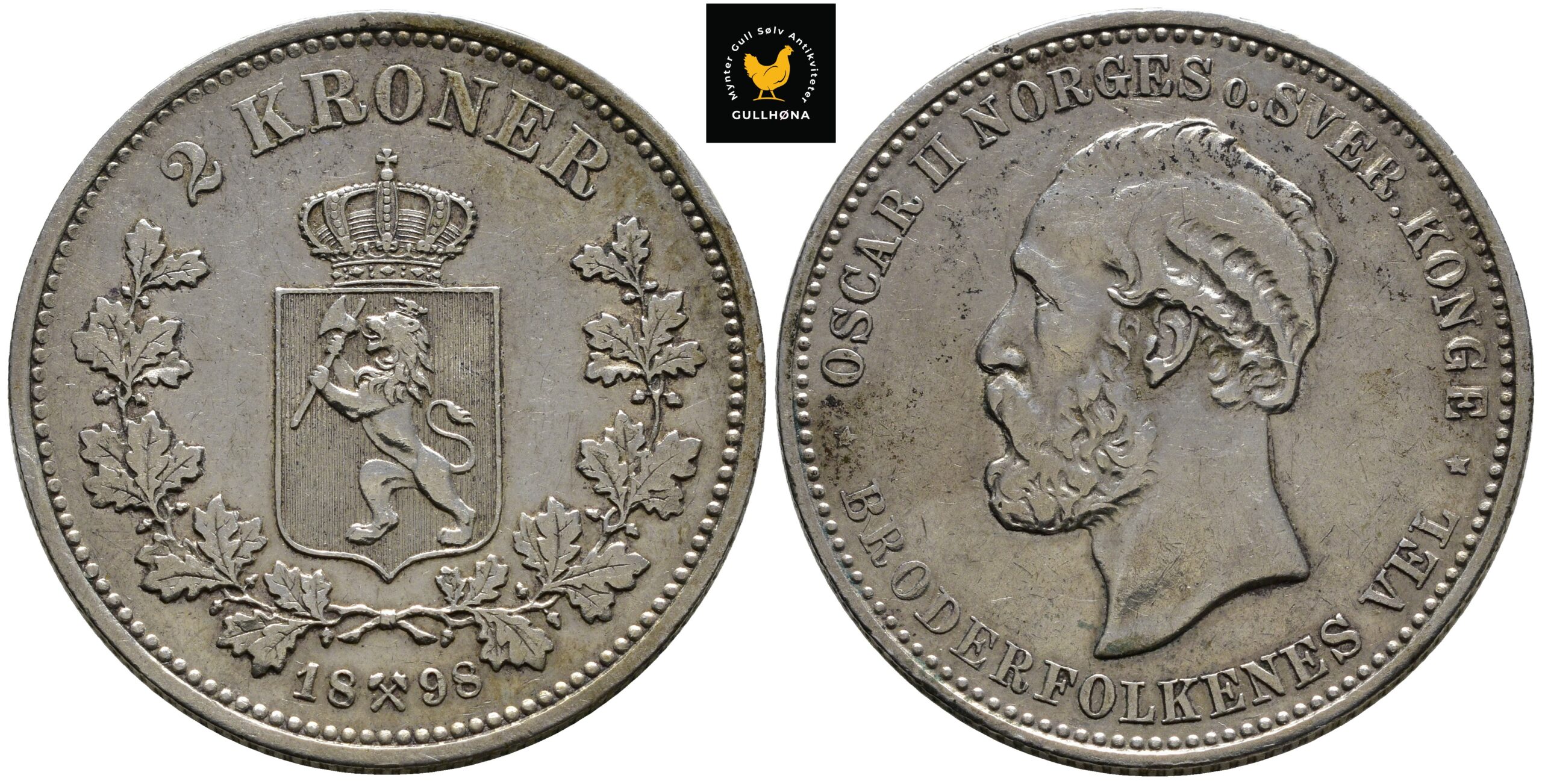 Hjem Mynter Mynter Norge Etter 1874 2 kroner 1898 Norge 2 Kroner, 1+