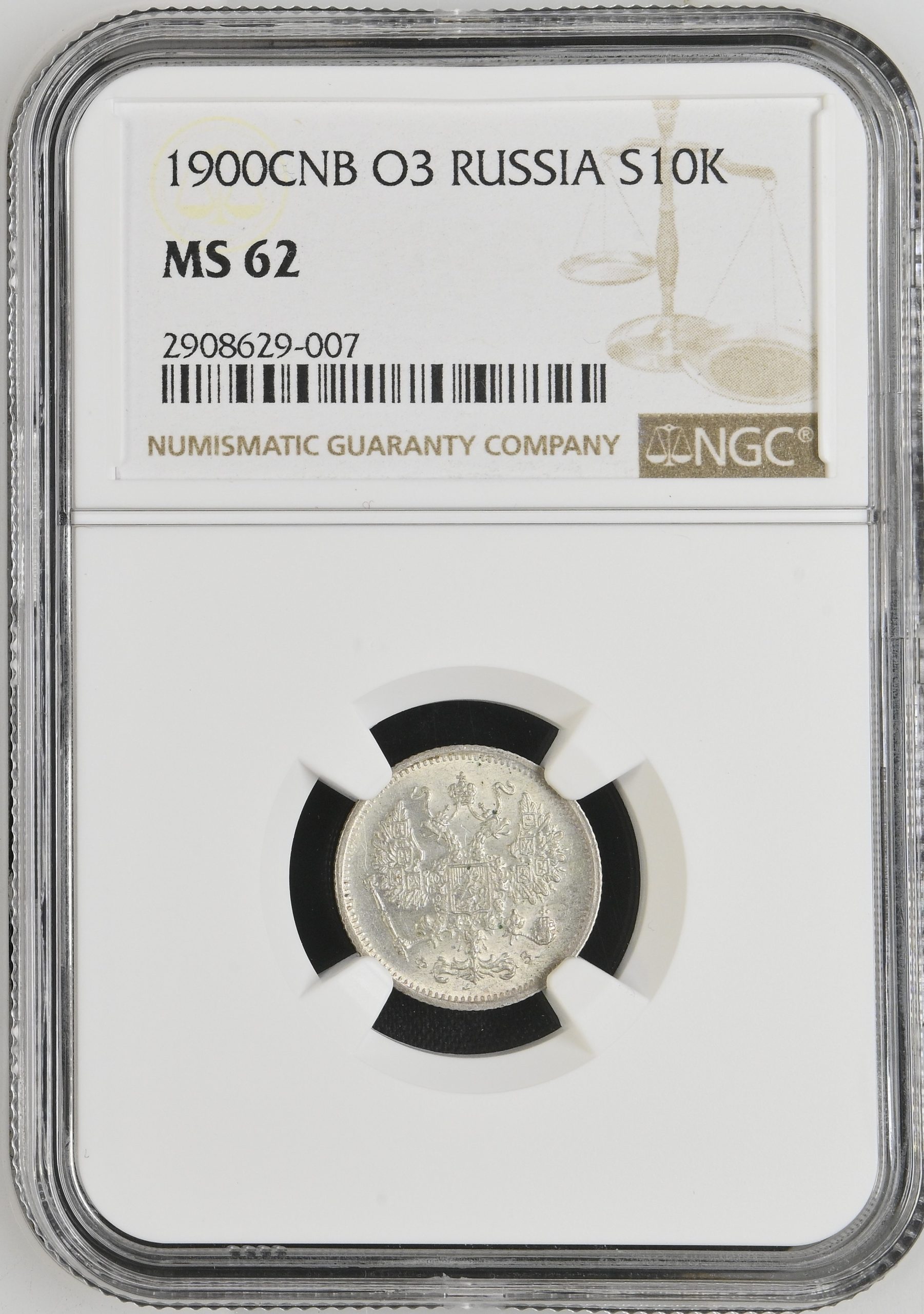 1900 CNB Russland 10 Kopeks – NGC MS62