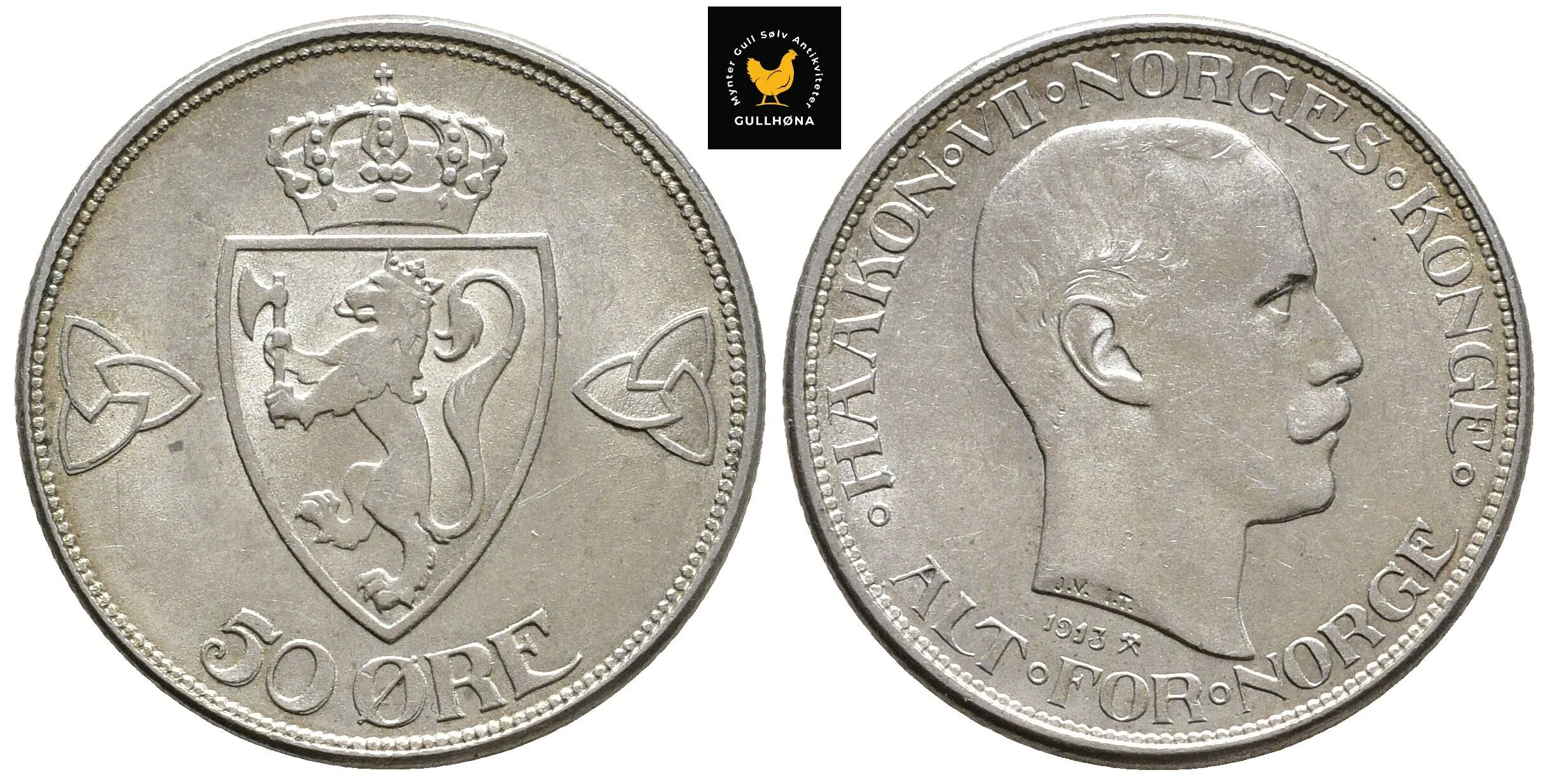 Hjem Mynter Mynter Norge Etter 1874 50 øre 1913 Norge 50 Øre, 0/01