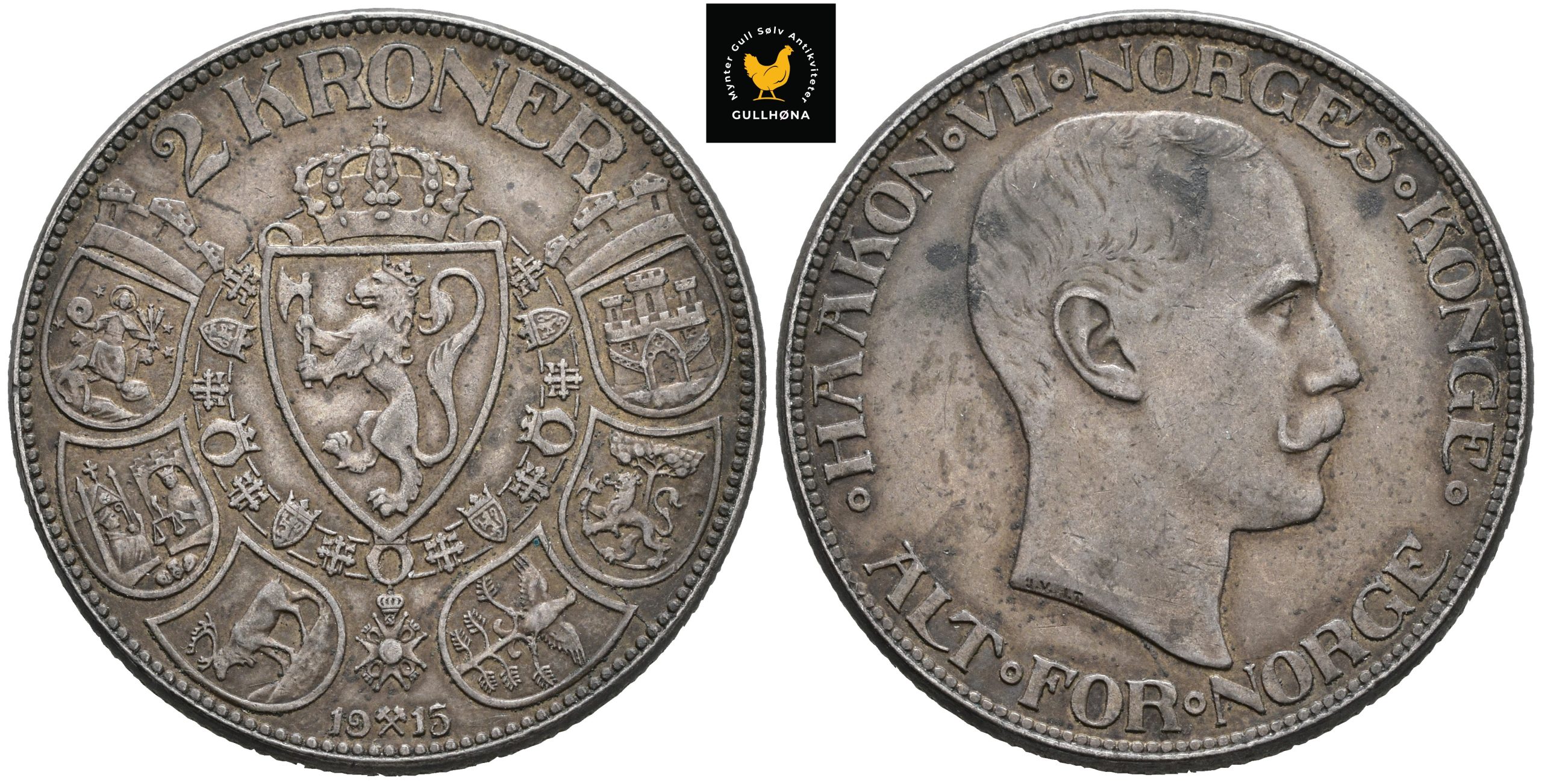 1915 Norge 2 Kroner, 1+, Mørk