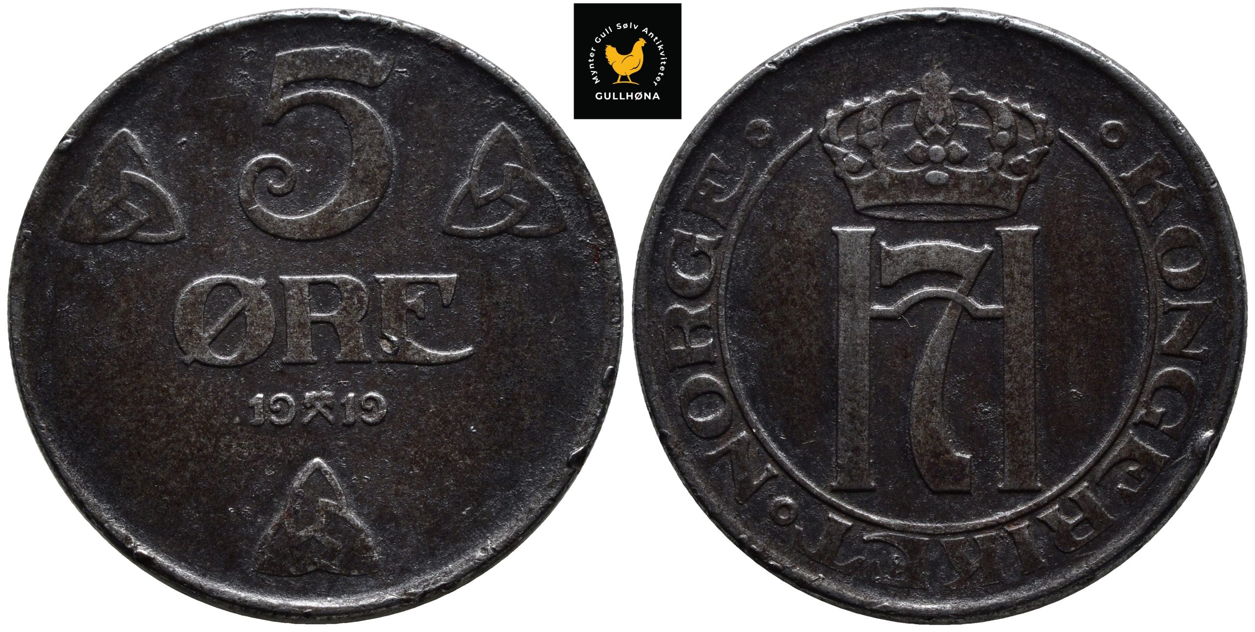 Hjem Mynter Mynter Norge Etter 1874 5 øre 1919 Norge 5 Øre, 1+