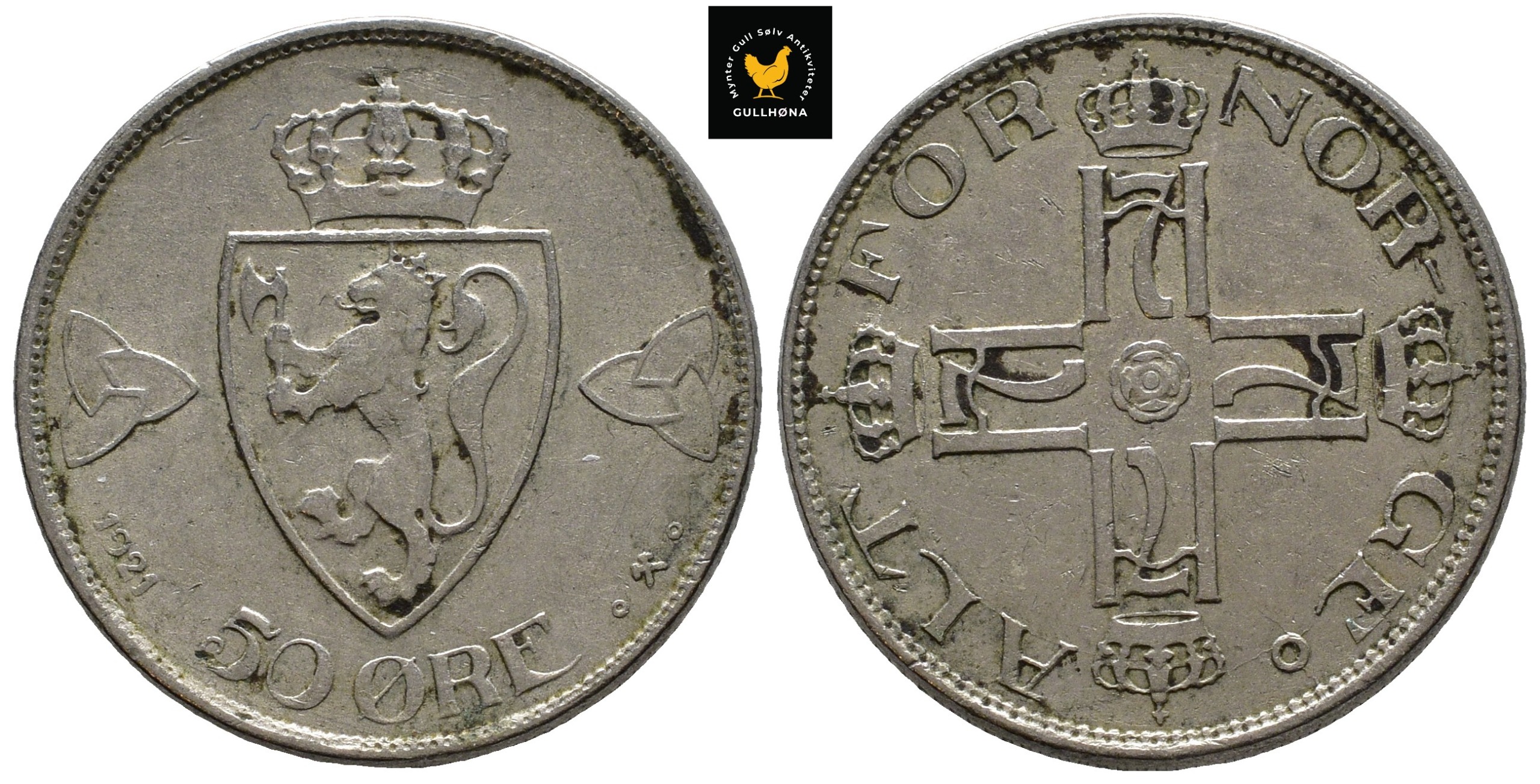 Hjem Mynter Mynter Norge Etter 1874 50 øre 1921 Norge 50 Øre