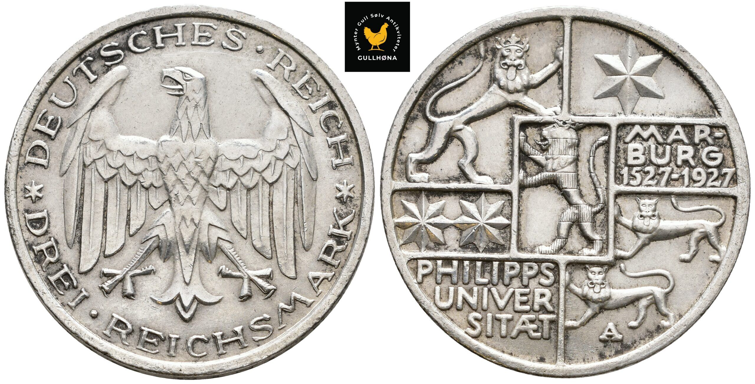 1927-A Tyskland 3 Reichsmark ”University in Marburg”, 01, renset