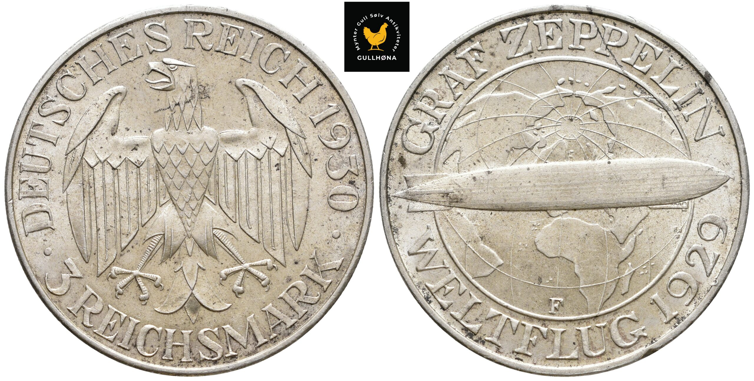 1930-F Tyskland 3 Reichsmark ”Graf Zeppelin”, 0/01