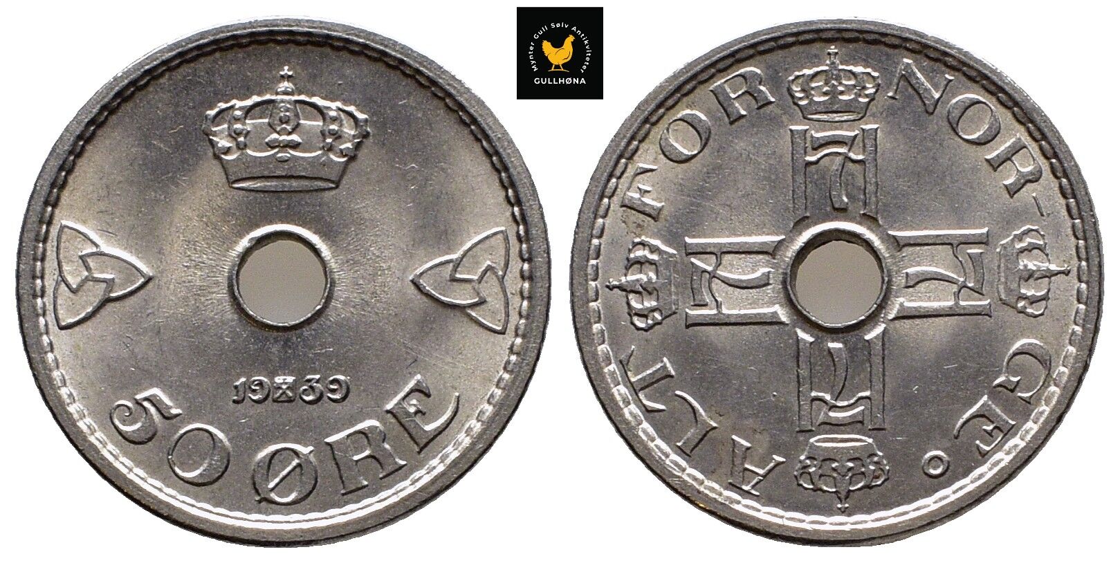 Hjem Mynter Mynter Norge Etter 1874 50 øre 1939 Norge 50 Øre