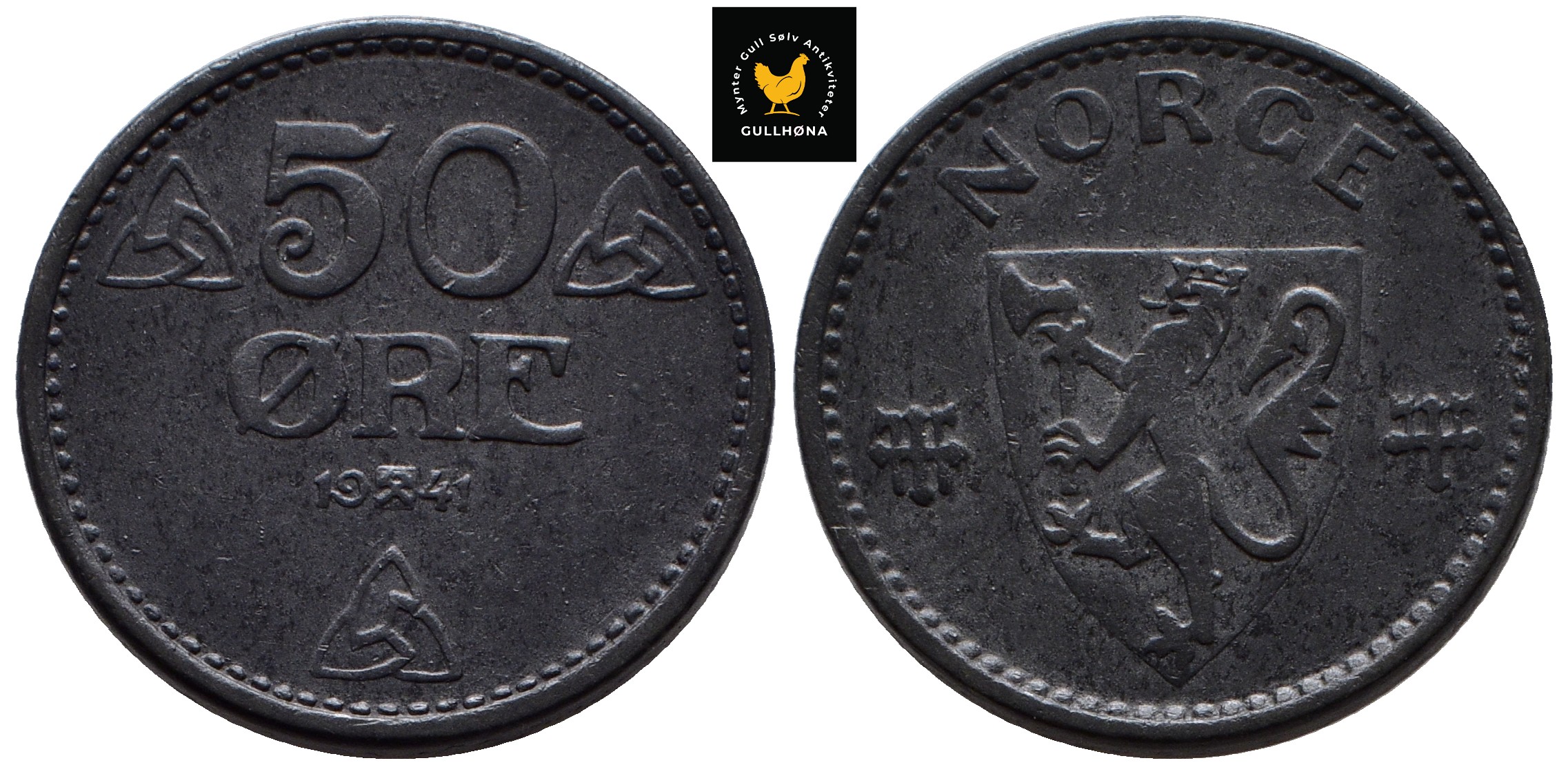 Hjem Mynter Mynter Norge Etter 1874 50 øre 1941 Norge 50 Øre Zink