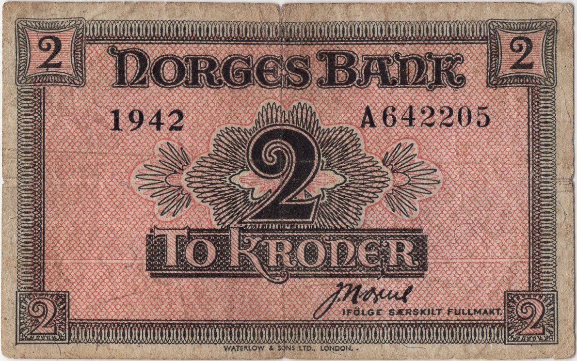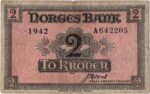 1942 Norge 2 Kroner “London Seddel” A.642205, 1-/2