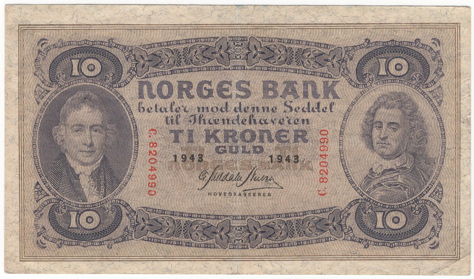 Hjem Sedler Sedler Norge 10 kroner 1943 Norge 10 Kroner C