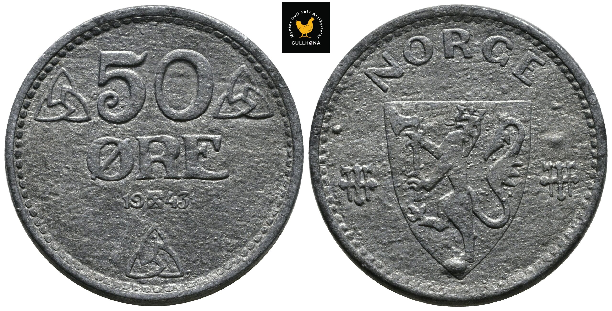 1943 Norge 50 Øre Zink, 0