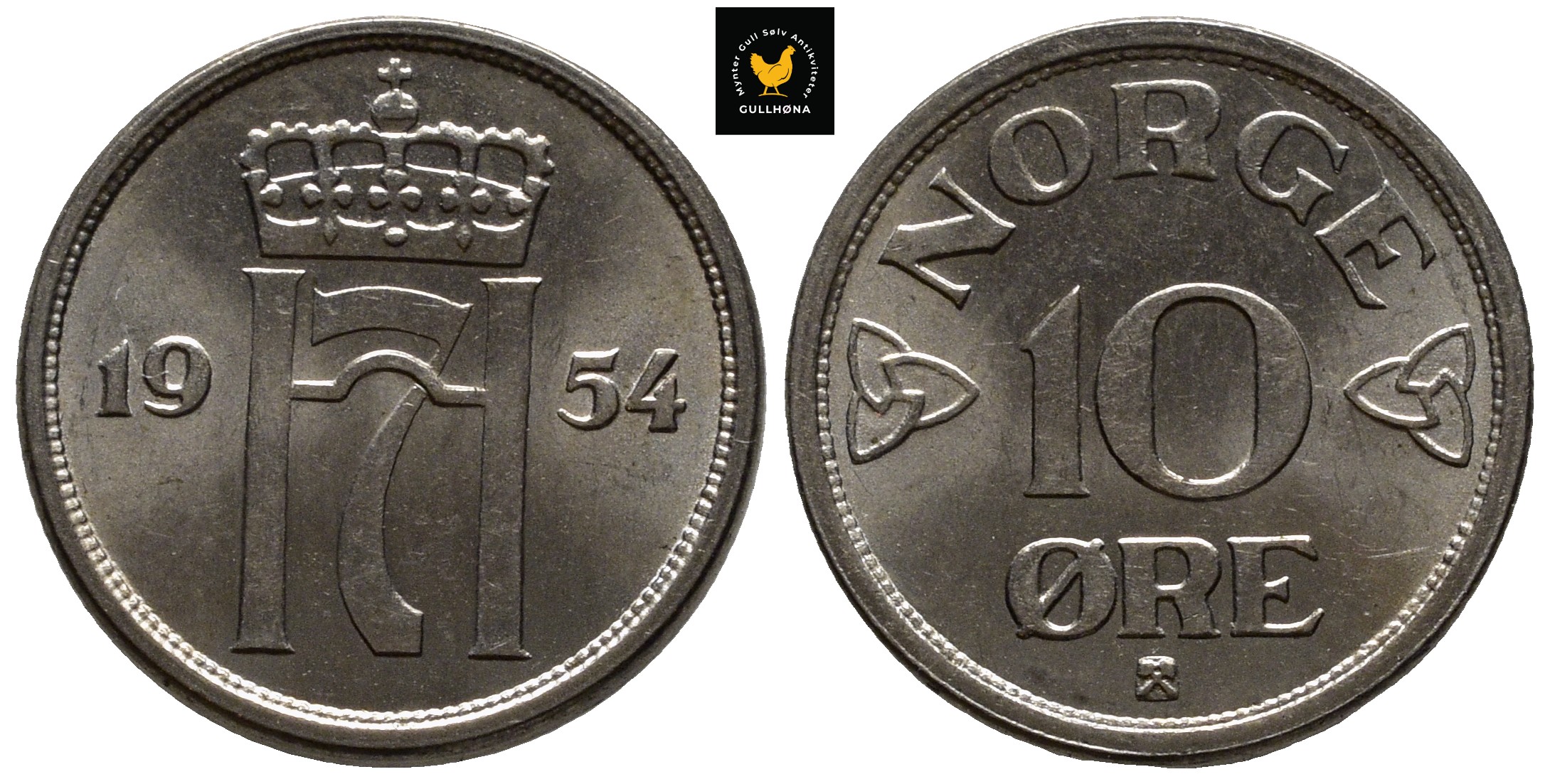 Hjem Mynter Mynter Norge Etter 1874 10 øre 1954 Norge 10 Øre