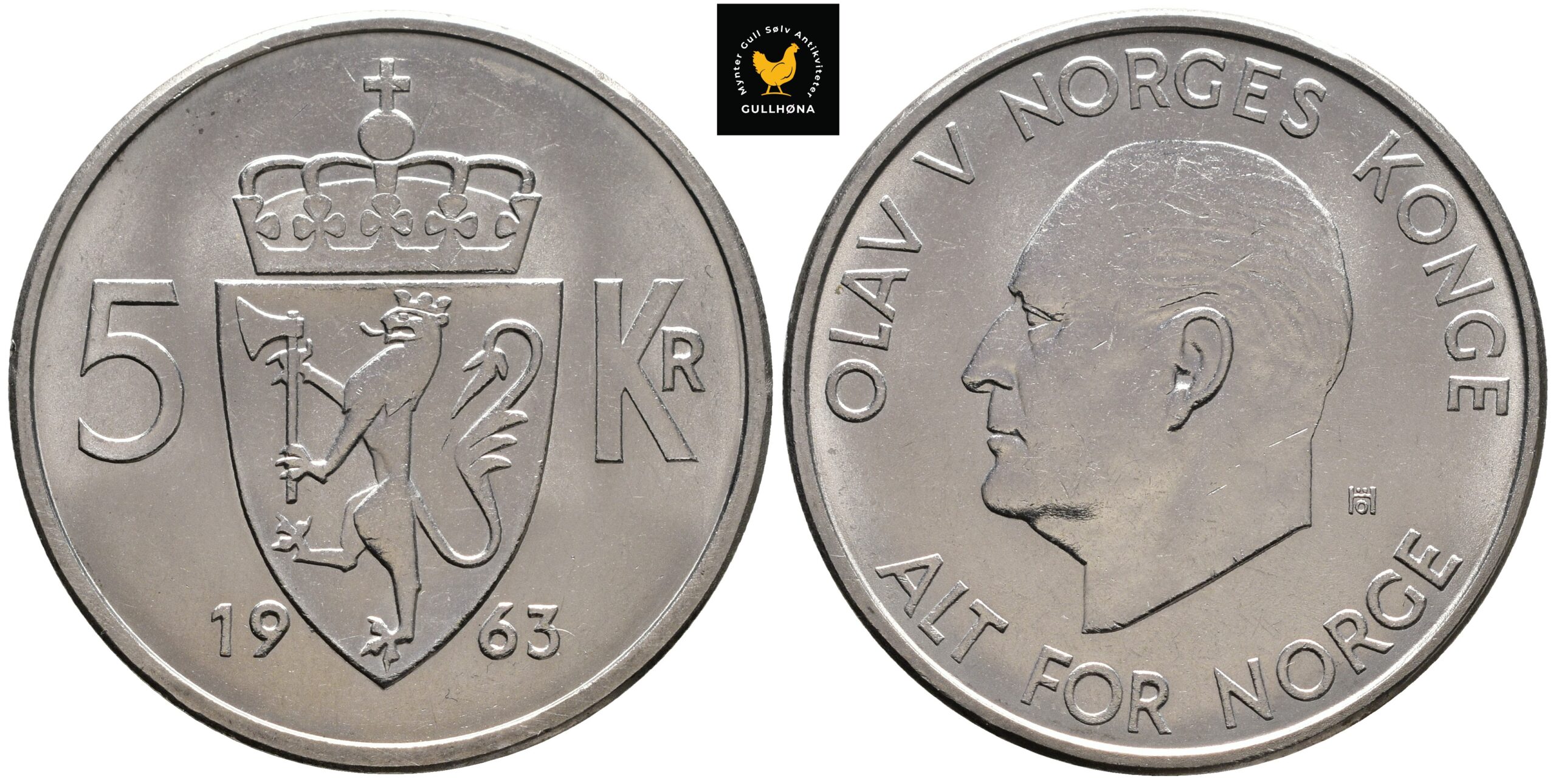 Hjem Mynter Mynter Norge Etter 1874 5 kroner 1963 Norge 5 Kroner, 0