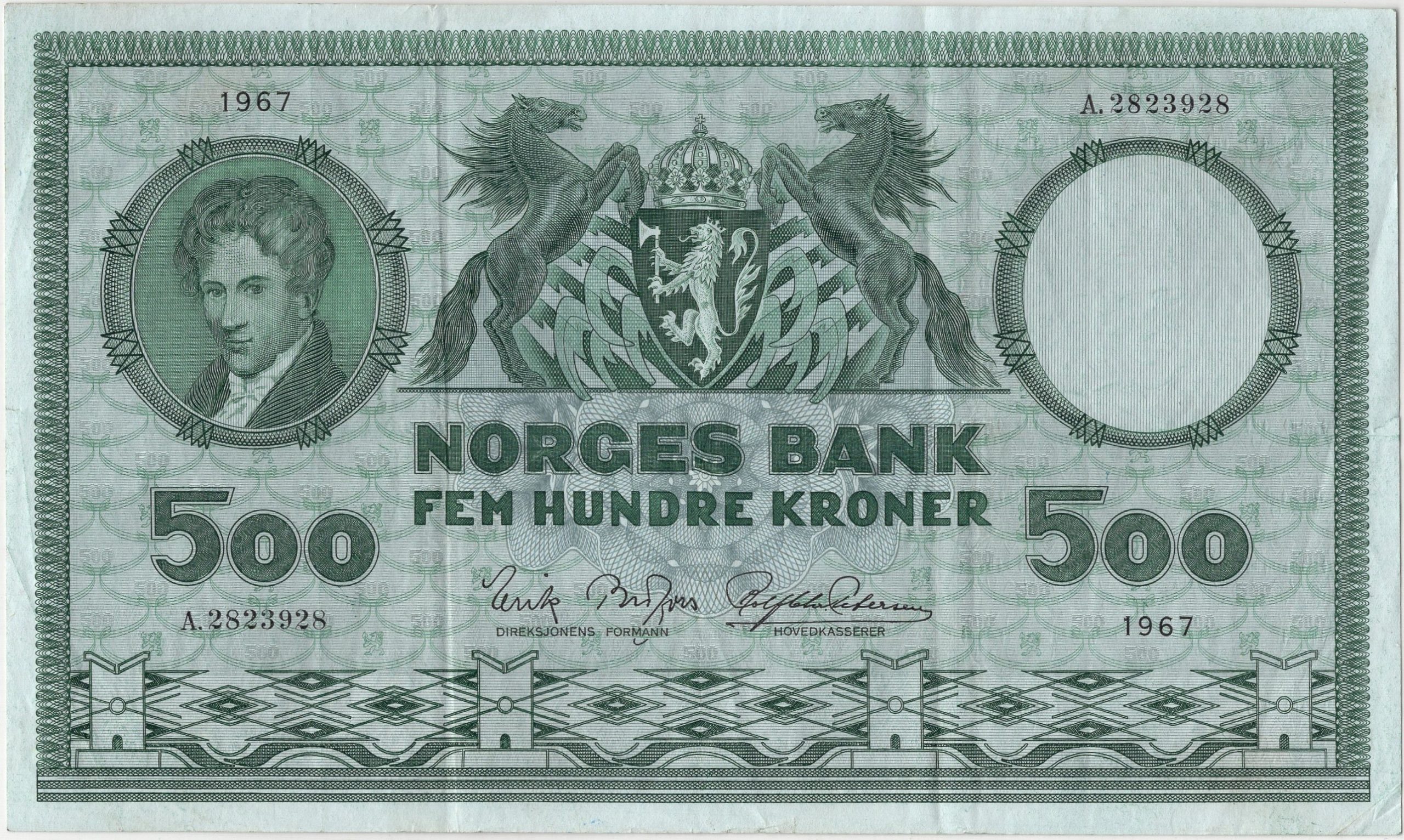 1967 Norge 500 Kroner A.2823928, 1, Rift