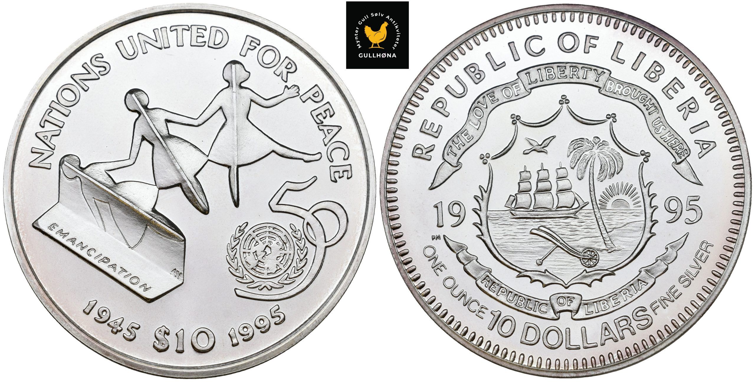 1995 Liberia 10 Dollars – 50th Anniversary of United Nations