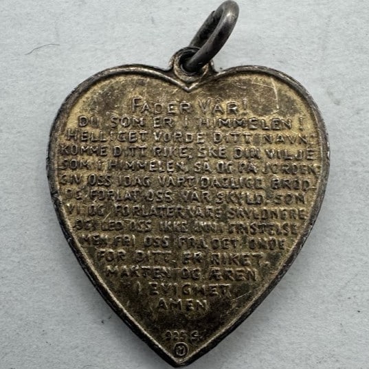 Anhenget har verset “Fader Vår” på baksiden.