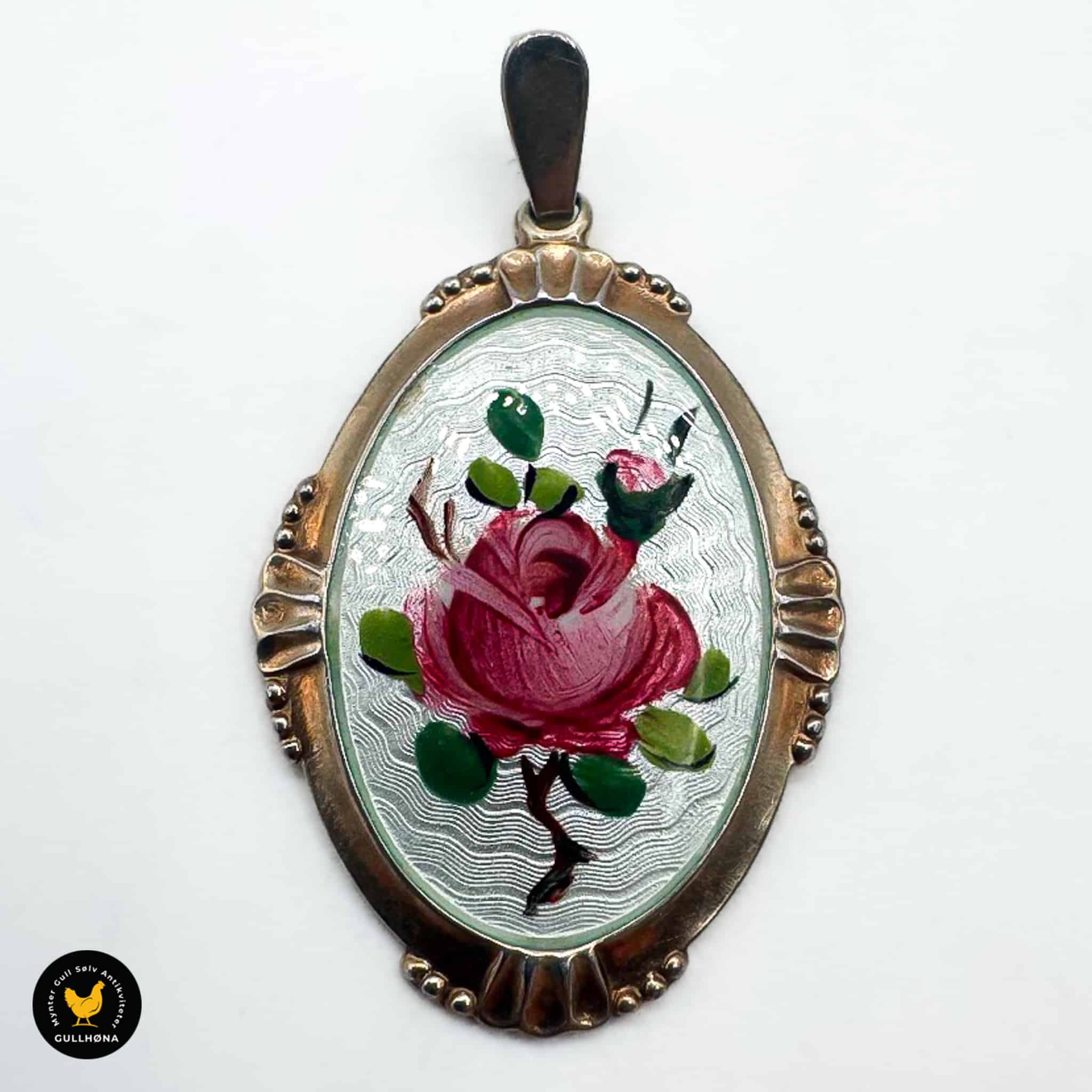 Anheng/brosje i sølv – F. Morken “Trondheimsrosen”