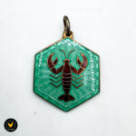 Anheng i sølv med grønn og brun emalje, stjernetegn krepsen.