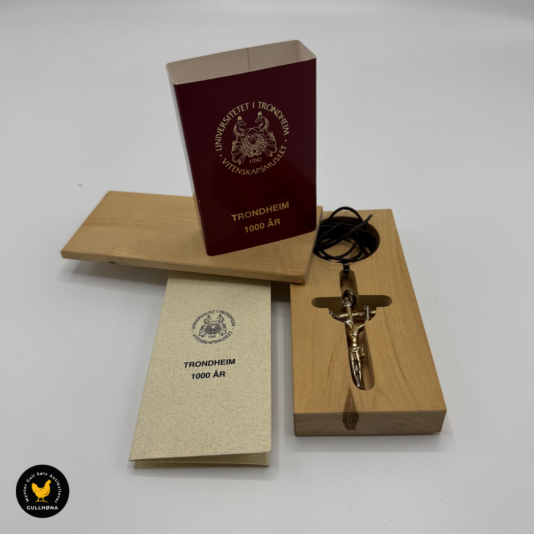 Flott krusifiks med spennende historie som ble utgitt i forbindelse med jubileimsserien til Vitenskapsmuseet i Trondheim. Dette er en kopi av et krusifiks som ble funnet i leirmassen utenfor Kjøpmannsgaten 31 i 1994.