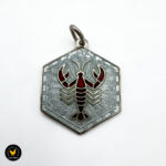 Anheng i sølv med grå og rød emalje, stjernetegn krepsen.
