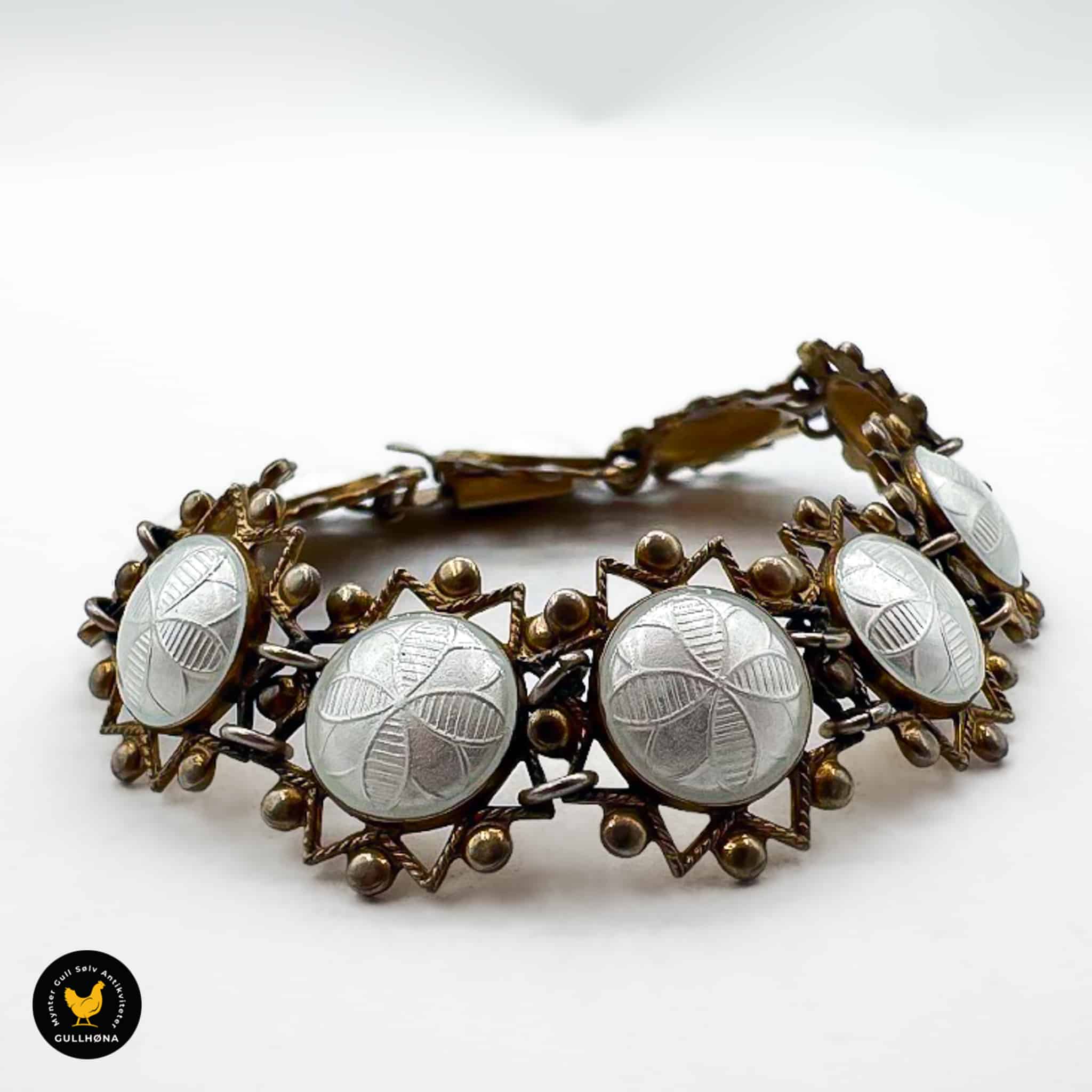 Armbånd i forgylt sølv med hvit emalje - Nordlie