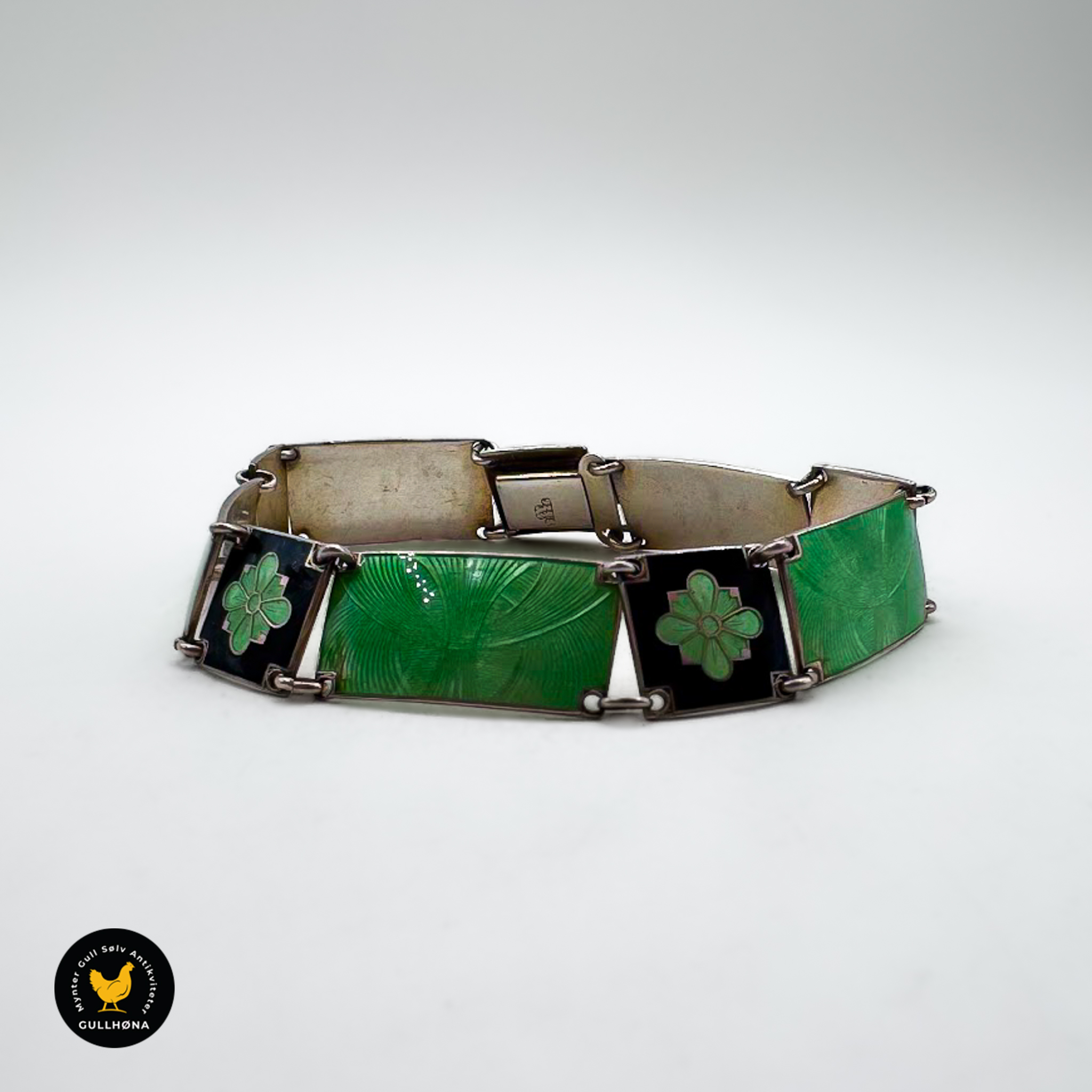Armbånd i sølv med lys grønn emalje - David Andersen