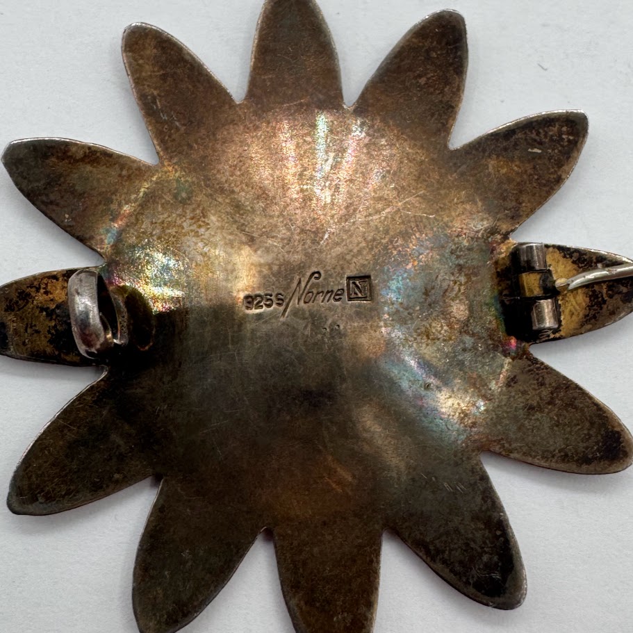 Blomst brosje i sølv med emalje - Arne Nordlie