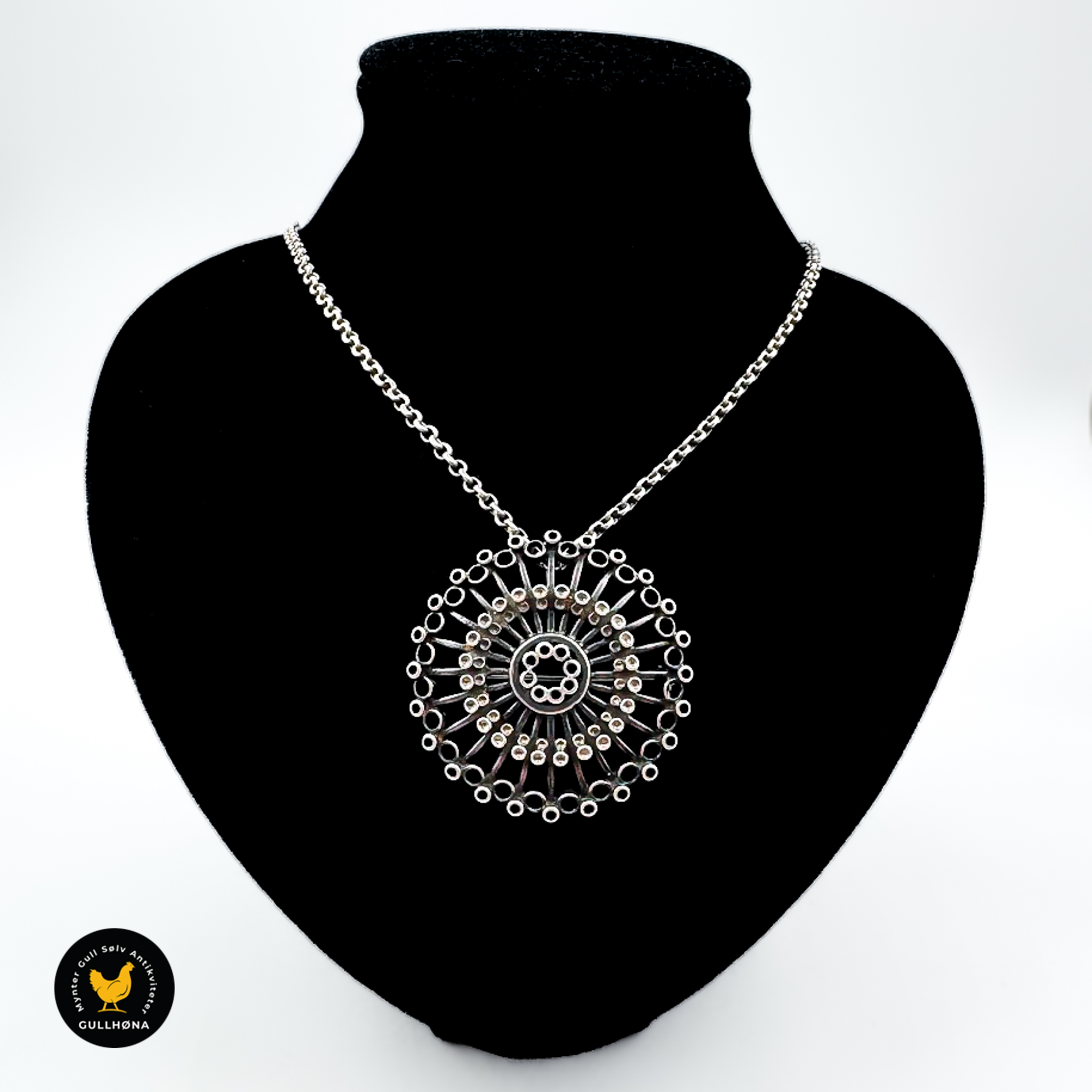 Halssmykke i sølv med hvit emalje – Ivar T. Holth