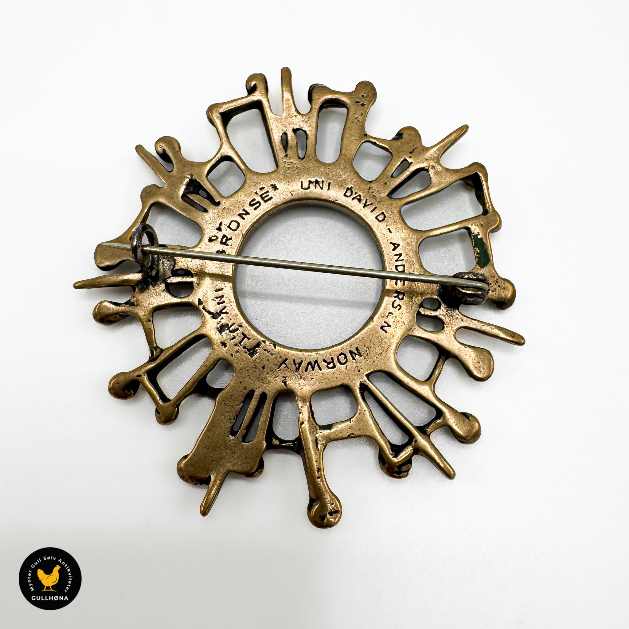 Stilig brosje av bronse laget av Unn Tangerud for David-Andersen.
